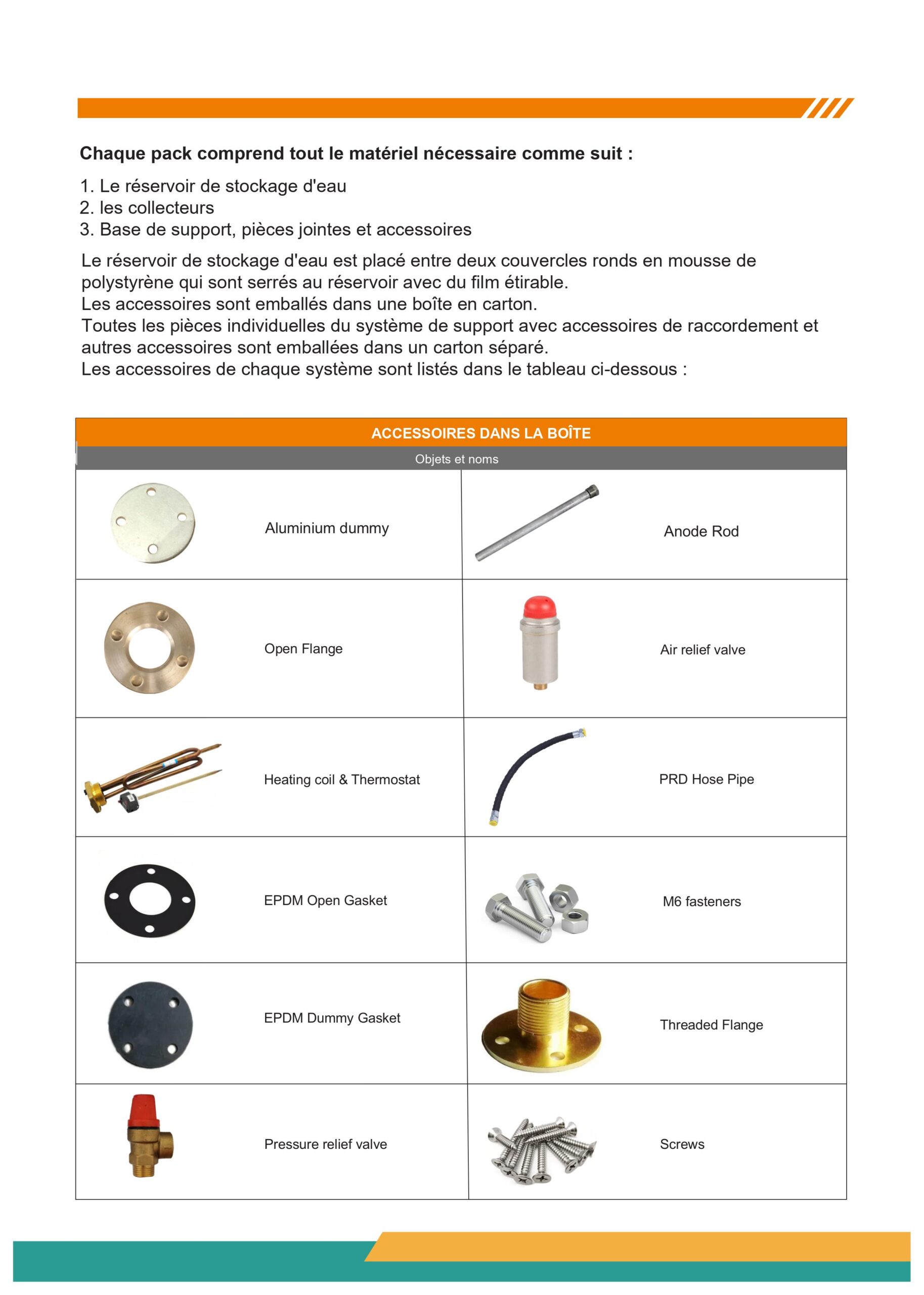 Chaque pack comprend tout le matériel nécessaire comme suit :