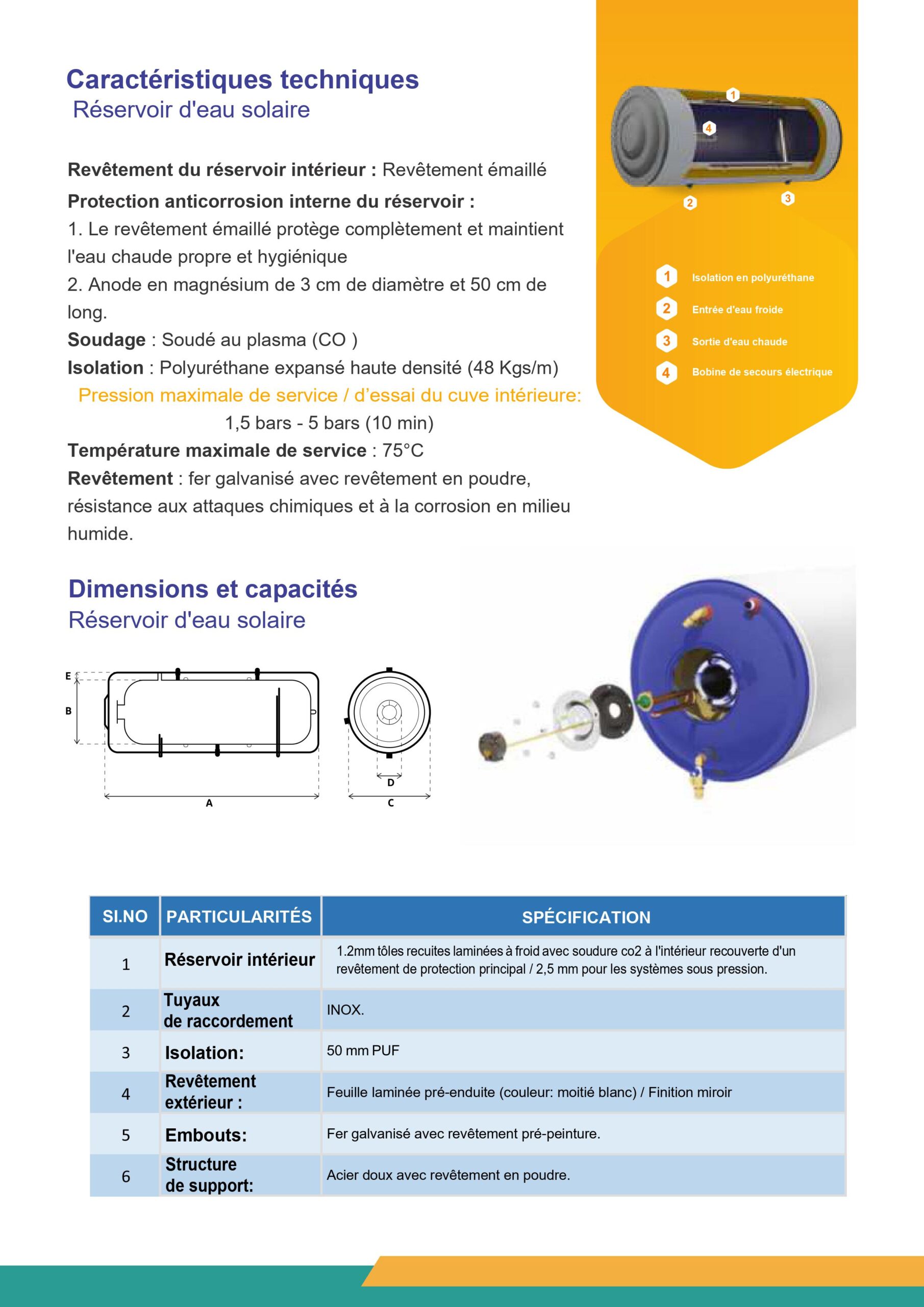 1. Réservoir de stockage : fabriqué en acier émaillé de 2,5 mm d’épaisseur avec technologie de revêtement en émail vitrifié/ émaillé, cuit à une température de 850 °C. L’émaillage est réalisé dans notre usine de production interne à la pointe de la technologie. Chaque réservoir d’eau est contrôlé avant sa sortie, garantissant ainsi une qualité d’émail supérieure.