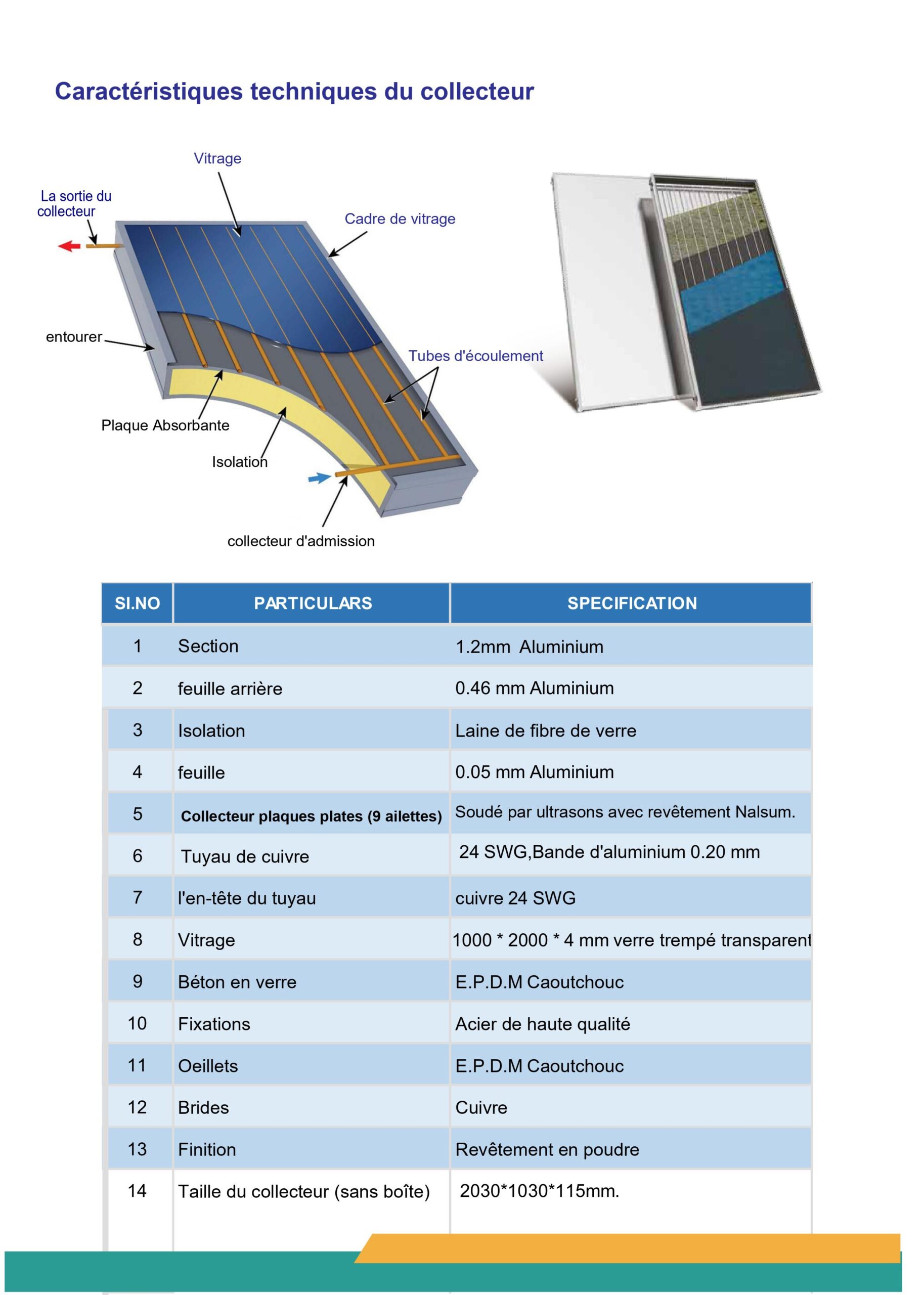 • Taille du collecteur (sans boîte) : 2030*1030*115mm.